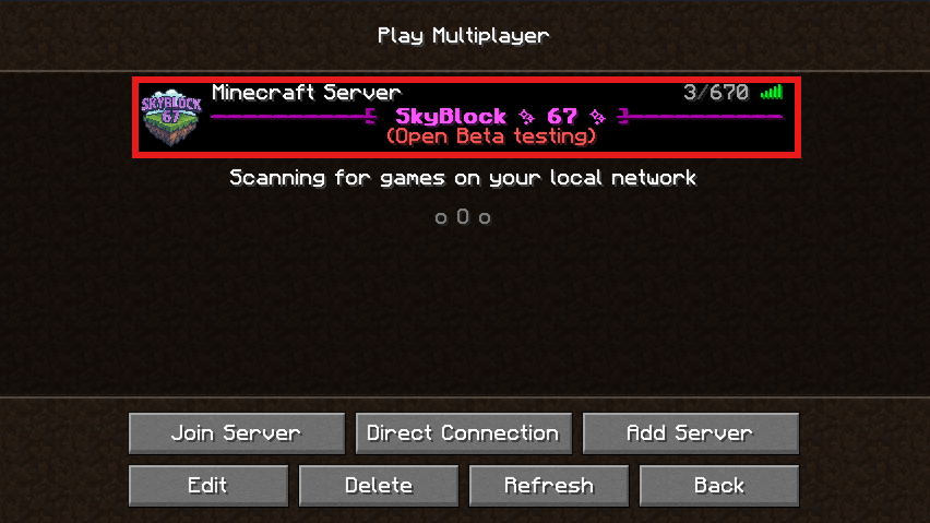 3. Then double click SkyBlock67 to join the server and enjoy your stay!
